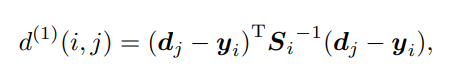 첫 번째 척도는 이동 정보를 반영하기 위한 마할라노비스 거리(Mahalanobis distance)이다.