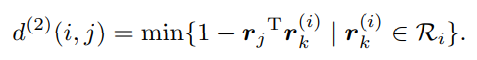 두 번째 척도는 외형 공간에서의 최소 코사인 거리(cosine distance).