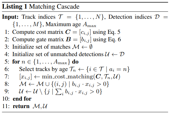 - return M, U : 최종 트랙-검출 매칭 결과와 끝까지 매칭되지 못한 검출을 반