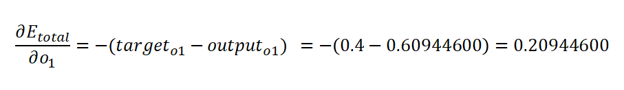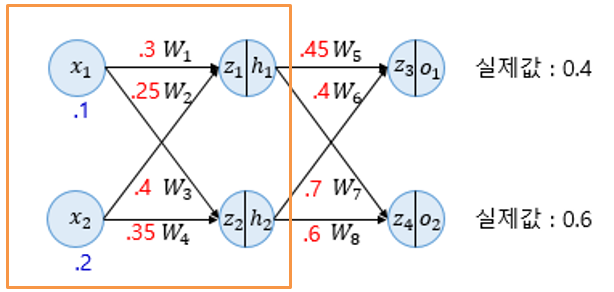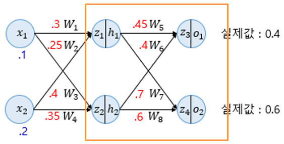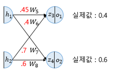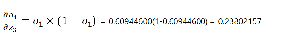 o1 = sigmoid(z3) = 0.60944600 (실제 값 0.4)