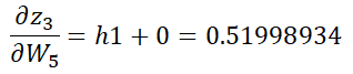 z3 = w5 * h1 + w6 * h2 = 0.45 * h1 + 0.4 * h2 = 0.44498412