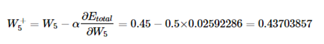 이제 경사 하강법을 통해 W5를 업데이트. (학습률은 0.5)