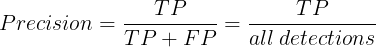Precision은 정밀도라고 불리며, 모든 검출 결과 중 옳게 검출한 비율을 의미한다.