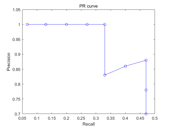 이 Precision값과 Recall값들을 그래프로 나열하면 PR곡선이 된다.