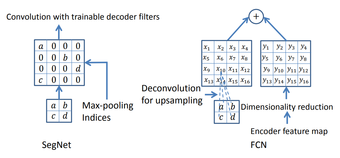 FCN은 upsampling 할 때 Deconvolution을 학습해야 하기 때문에 그만큼 학습을 위한 가중치 파라미터가 필요하지만, SegNet에서는 이 과정이 생략되기 때문에 학습 파라미터가 줄게 된다.