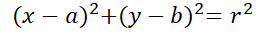 위 그림과 같이 중심이 (a, b)이고 반지름이 r인 원의 방정식은 다음과 같다.