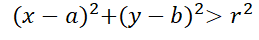 이 때 점 (x, y)가 원의 외부에 존재 한다면 다음 식을 만족한다.