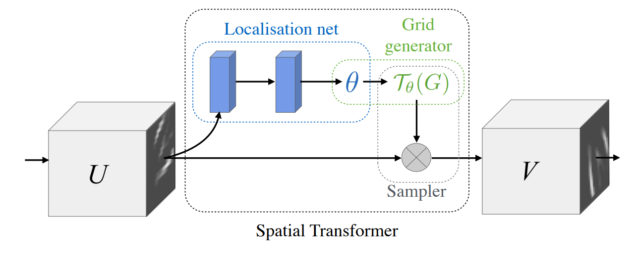 - Sampler 단계에서 입력 U와 transform matrix를 입력을 곱해 변형이 일어나지 않은 output을 얻는다.
