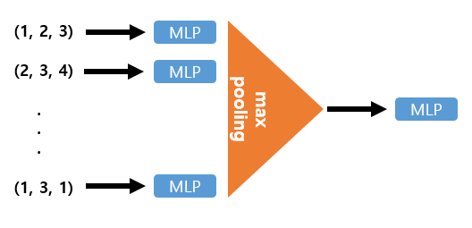 1. 각 point마다 MLP에 통과시켜 feature를 뽑아낸 뒤(이때 MLP의 weight는 모든 point마다 동일하게 사용된다)
