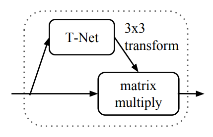- input transform에서는 T-Net을 이용하여 3x3 transform matrix 구함.