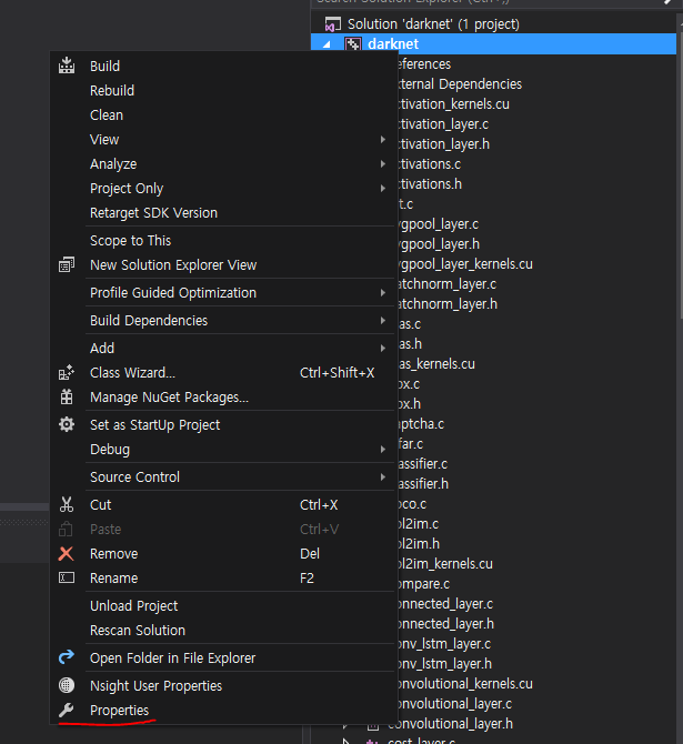 if, 솔루션 로딩이 안될경우, darknet.vcxproj 파일을 NotePad++ 같은 에디터로 열어 준다.