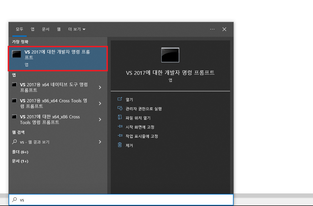 4. VS 2017 개발자 명령 프롬포트를 열어 genWindowsMakefiles.cmd 실행