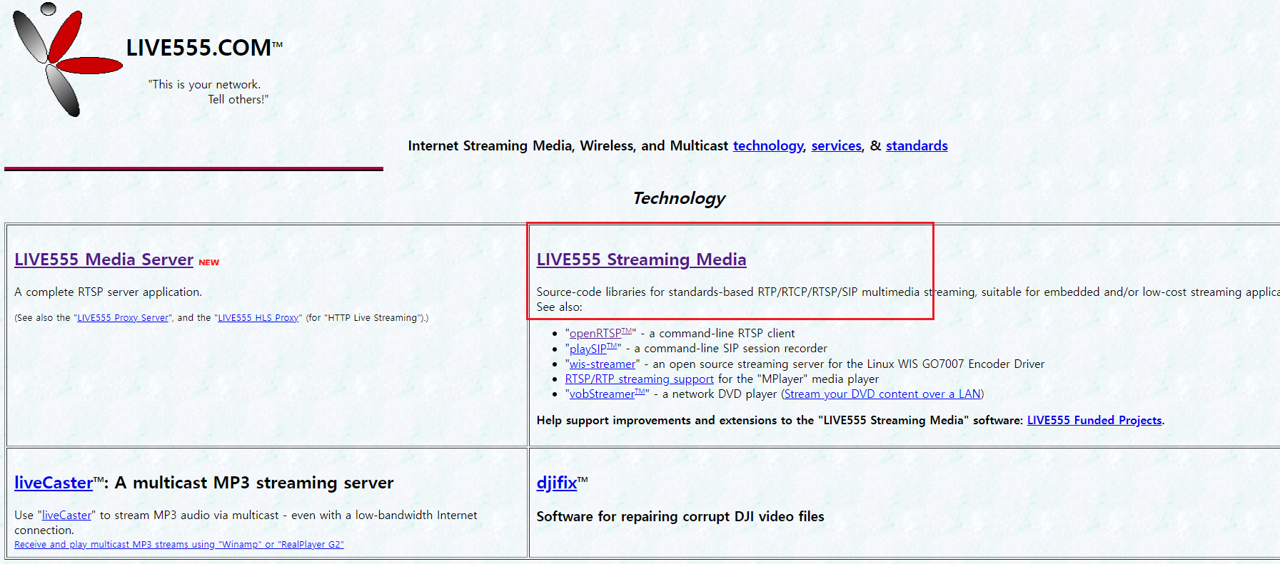 1. 위 링크 에서 LIVE555 Streaming Media 탭 선택