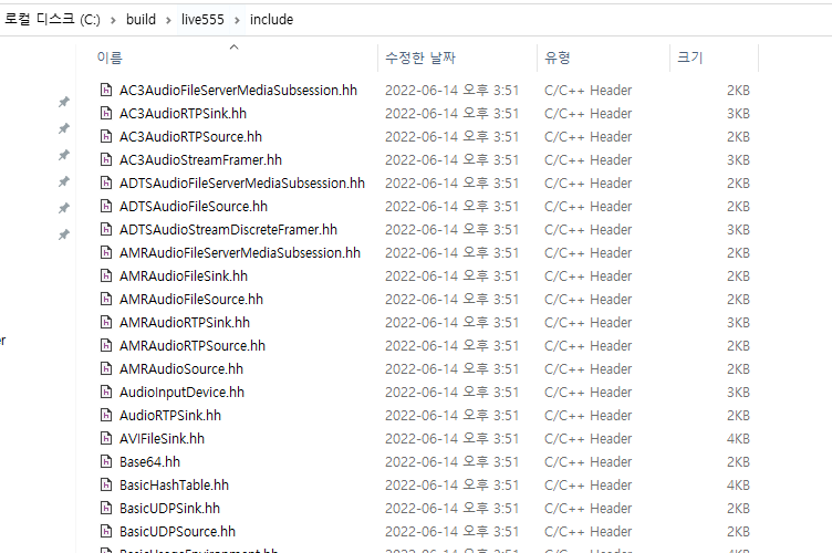 - BasicUsageEnvironment, groupsock, liveMedia, UsageEnvironment의 각 include폴더 내부 소스를 한 include 폴더에 복사.