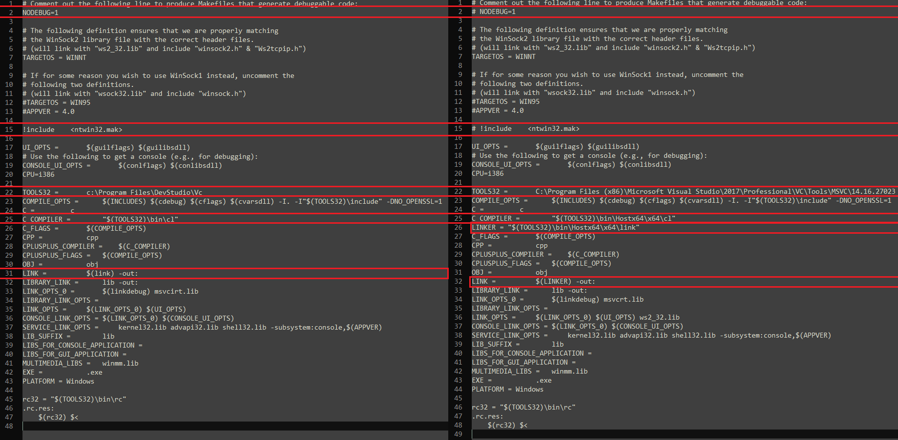 - LINKER = "$(TOOLS32)\bin\Hostx64\x64\link" 추가.