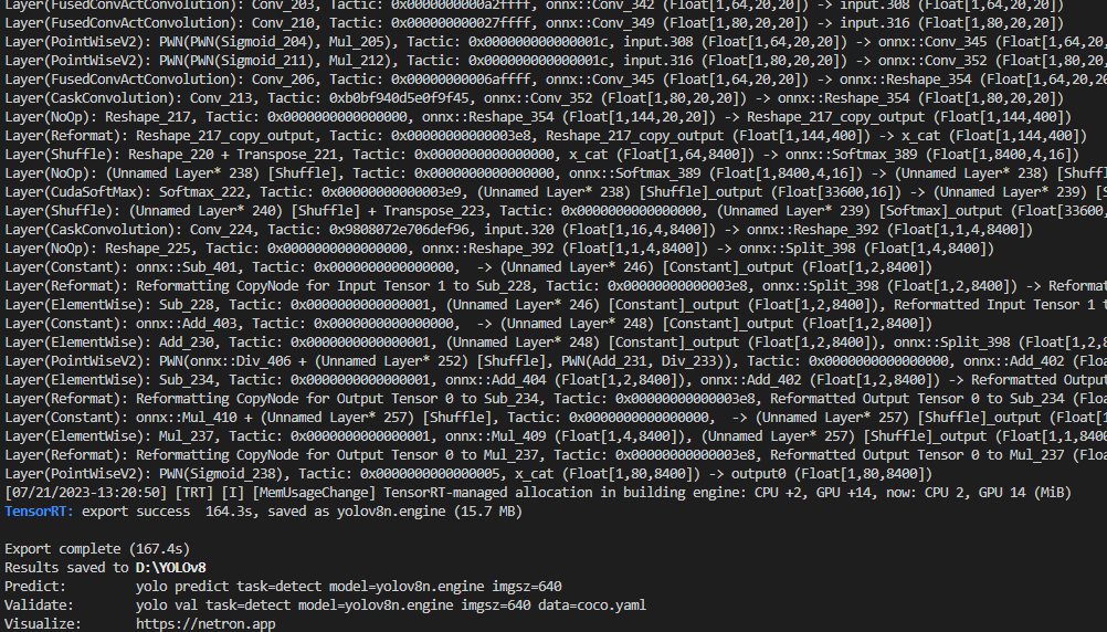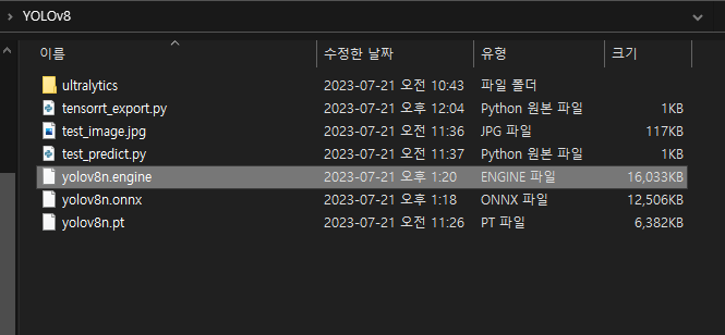 - format='engine'으로 pytorch model을 TensorRT로 export.