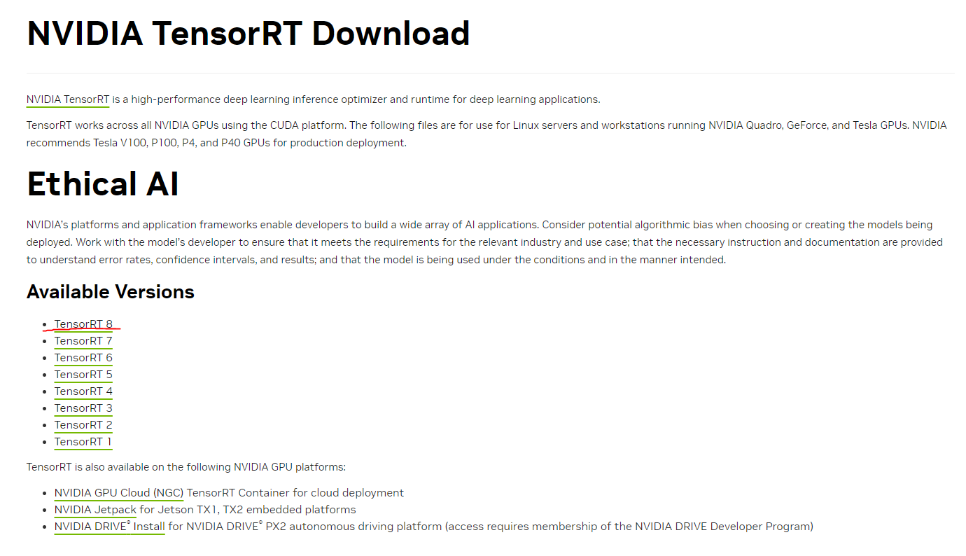 - 본인은 TensorRT 8.5.1.7을 사용.