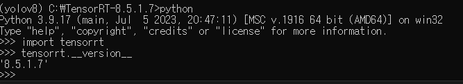 - yolov8 환경에서 위 명령어를 통해 TensorRT 설치.