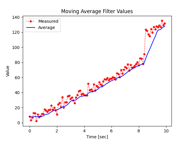 - Moving average filter는 현재 데이터를 기준으로 뒤로 N개만큼의 평균을 이용해서 노이즈를 제거하는 방식이다.