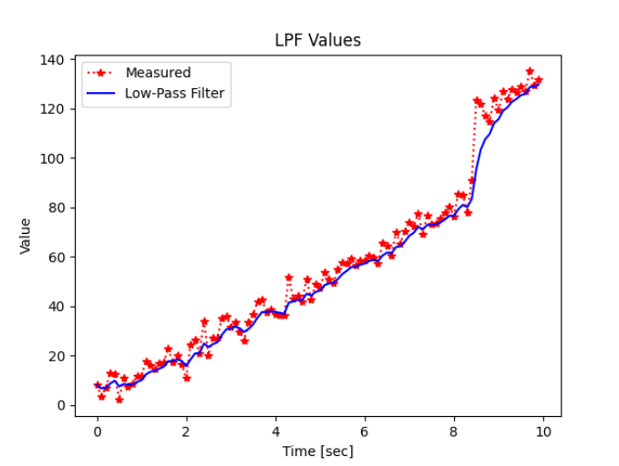 - low_pass_filter() 함수에서 LPF 수식을 계산하여 필터값을 계산.