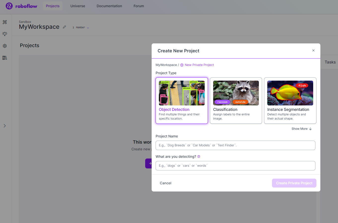 - Object Detection 프로젝트를 생성한다.