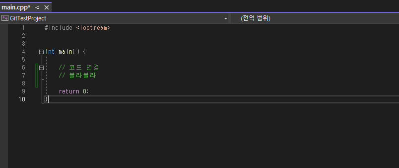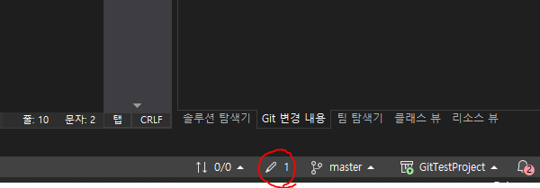 - 우측 하단 펜 아이콘을 클릭, 'Git 변경 내용' 탭을 연다.