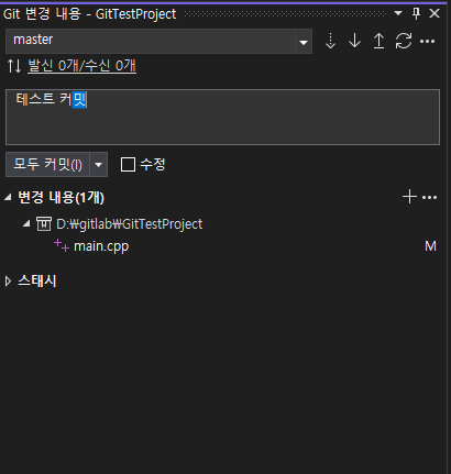 - 커밋 내용을 입력하고 '모두 커밋'.