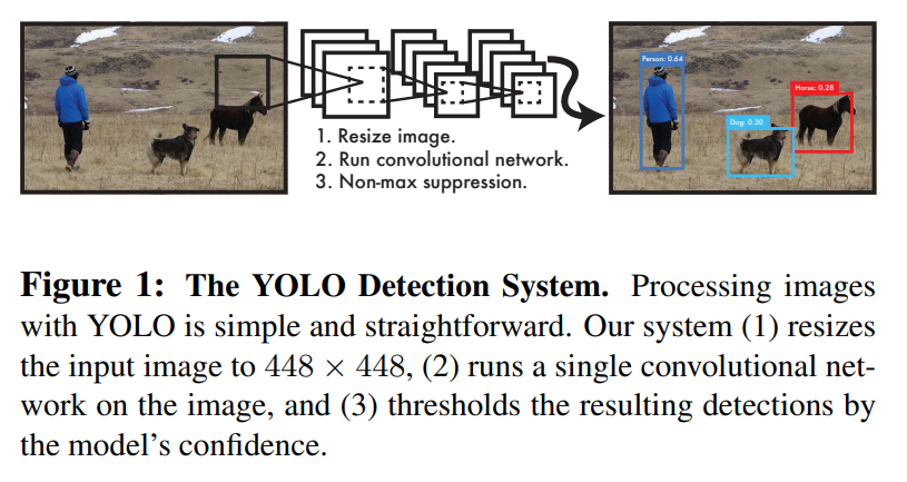 - YOLO는 단일 Convolution Network로 여러 바운딩 박스와 해당 박스에 대한 클래스 확률을 동시에 예측한다.
