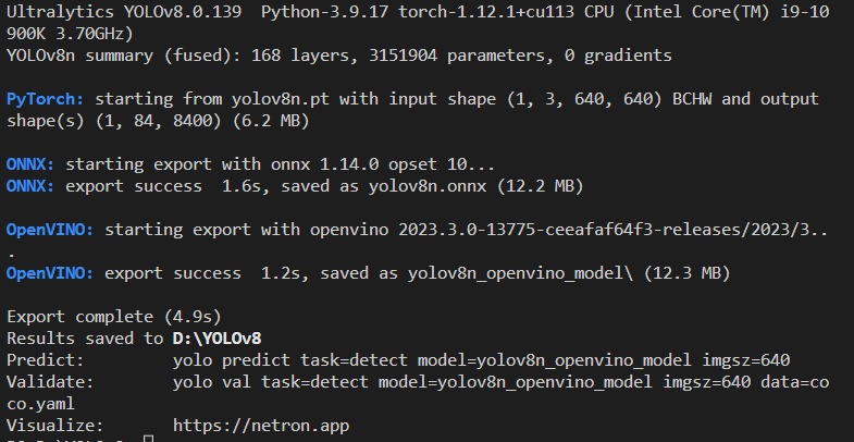 - export가 성공하면 "yolov8n_openvino_model' 경로가 자동으로 생성.