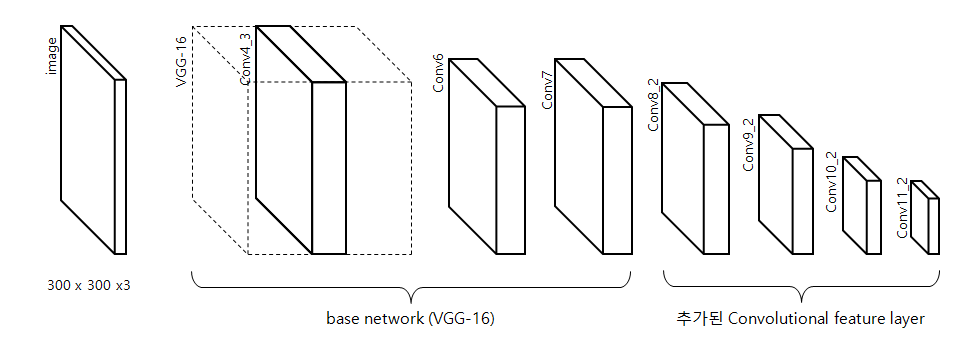 - 초기 network layer는 고품질 이미지 분류에 사용되는 표준 architecture(VGG-16)를 기반으로 하며, 이를 기본 네트워크(base network)라고 한다.