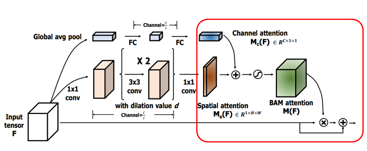 - BAM은 두 개의 별도 경로를 통해 효율적으로 집중하거나 억제할 대상과 위치를 학습하고 개선.