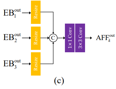 - AFF는 서로 다른 스케일의 특징을 받아들여, 인코더와 디코더 간의 다중 스케일 정보 흐름을 합침.